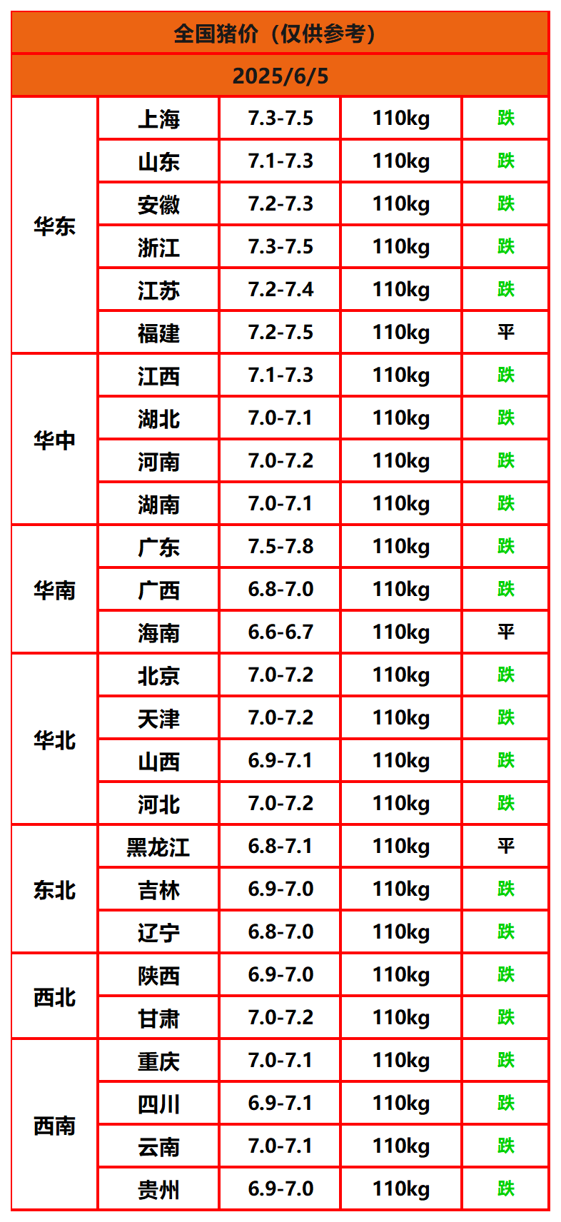 今日猪价 | 2025年6月5日全国猪价行情一览表!