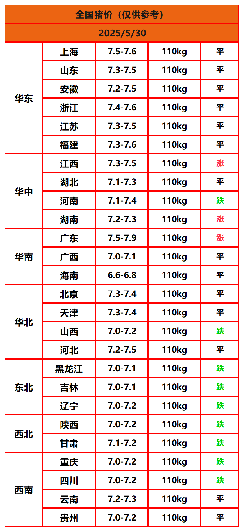 今日猪价 | 2025年5月30日全国猪价行情一览表!